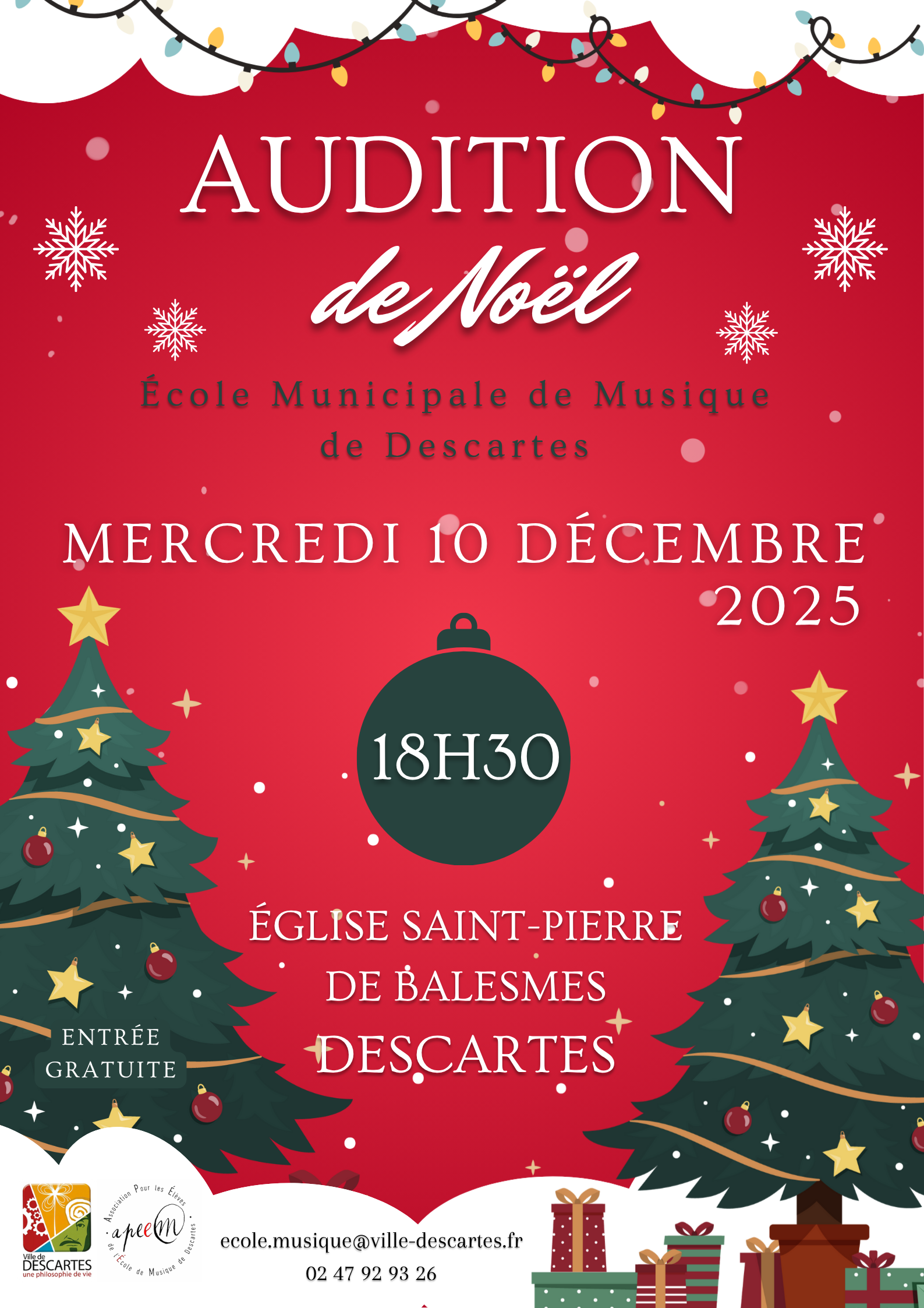 Salle des fêtes, Concert de Noël de l'École de Musique, samedi 20 décembre 2025