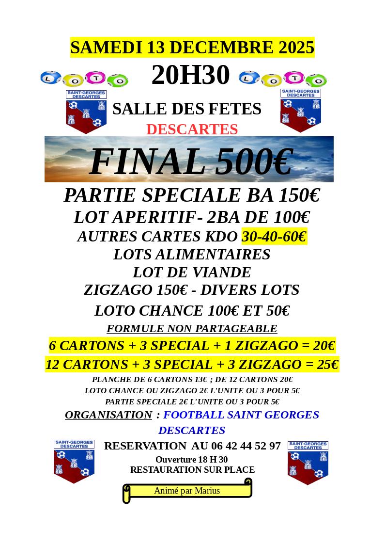 Salle des fêtes, Loto de la SGD, samedi 13 décembre 2025